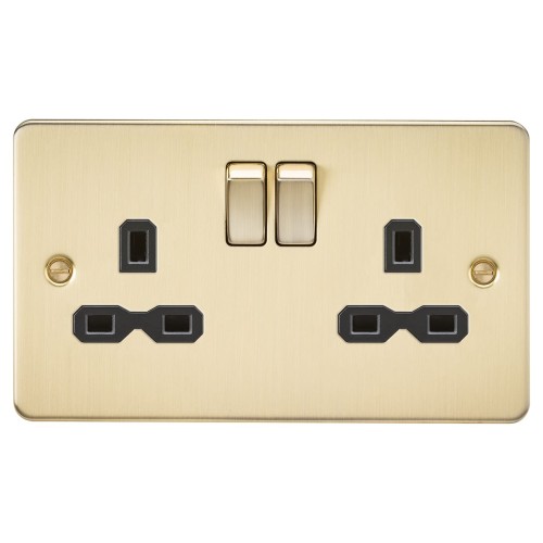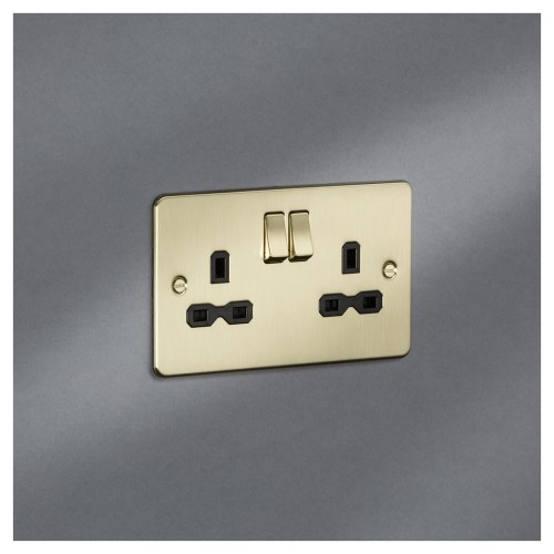 • Knightsbridge 13A 2 Gang Switched Socket with Twin Earths - Brushed Brass with Black Insert