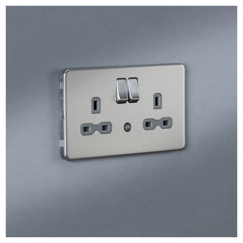 • Switched socket features a screwless flat plate design that delivers a seamless finish with no visible fixings, for a smooth decorative touch