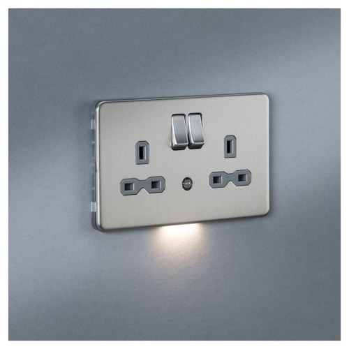 • Knightsbridge 13A 2G DP Switched Socket - Photocell Nightlight Function - Brushed Chrome/Grey