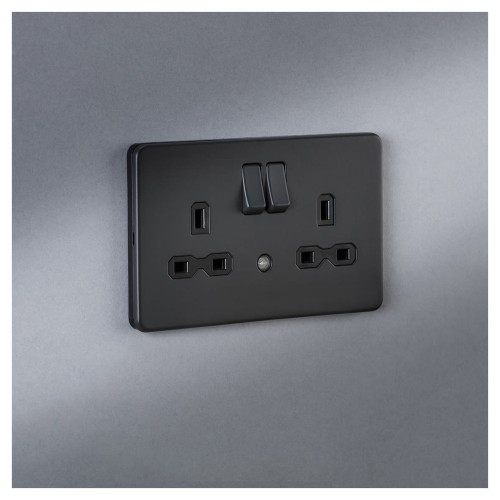 Switched socket features a screwless flat plate design that delivers a seamless finish with no visible fixings, for a smooth decorative touch