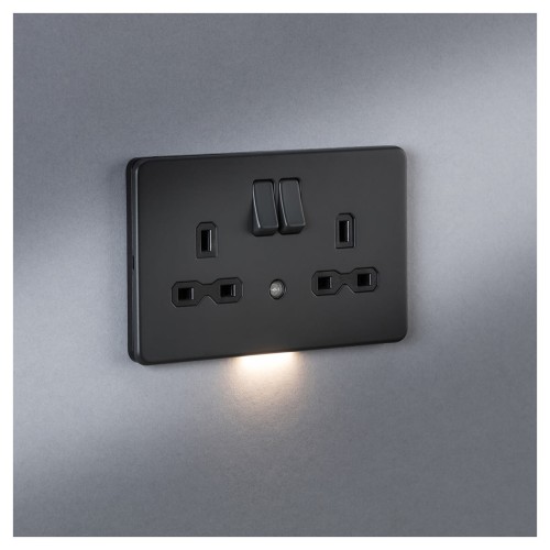• Knightsbridge 13A 2G DP Switched Socket with Photocell Nightlight Function - Anthracite/Black
