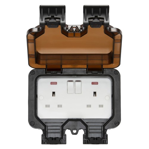 • Knightsbridge 13A IP66 2 Gang Switched Outdoor Weatherproof Socket with Neon - Black