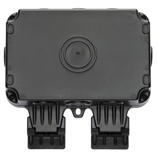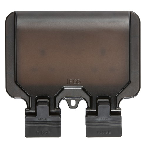 • Outdoor weatherproof switched socket in a black finish with a smoked black front casing allowing for indicator visibility