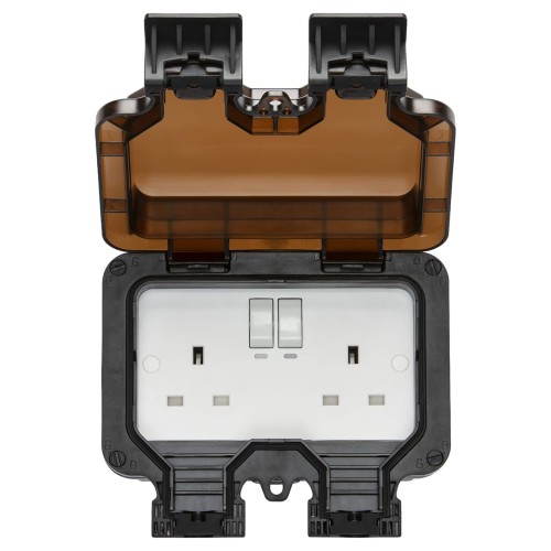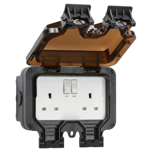 Knightsbridge 13A IP66 2 Gang Switched Outdoor Weatherproof Socket with Remote Control - Black