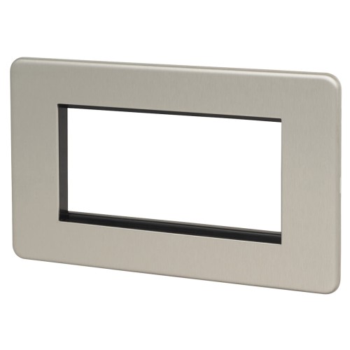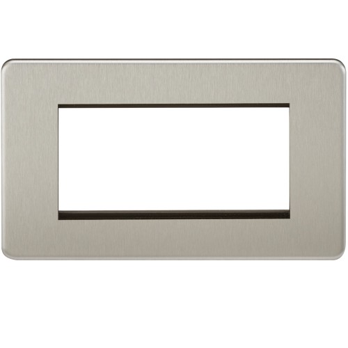 • Knightsbridge 2 Gang 4 Module Euro Screwless Faceplate - Brushed Chrome