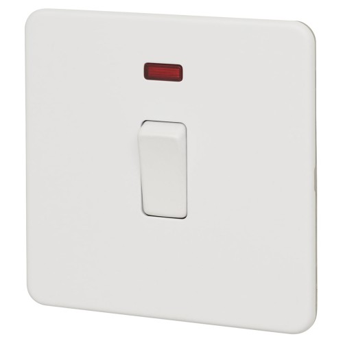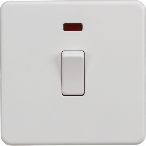 • Knightsbridge 20A 1 Gang Double Pole Screwless Flat Plate Appliance Switch with Neon - Matt White