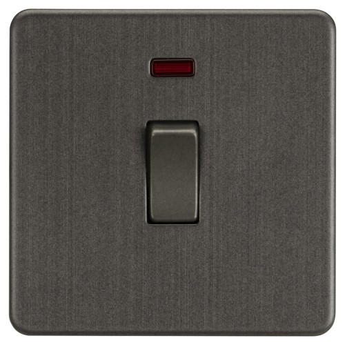 • Knightsbridge 20A 1 Gang Double Pole Screwless Flat Plate Appliance Switch with Neon - Smoked Bronze