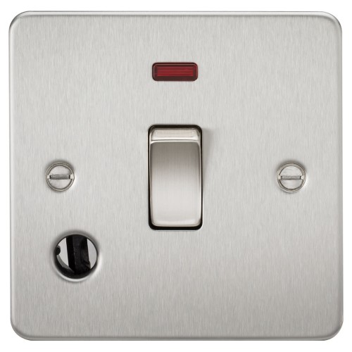 Knightsbridge 20A 1 Gang Flat Plate DP Appliance Switch with Neon & Flex Outlet - Brushed Chrome