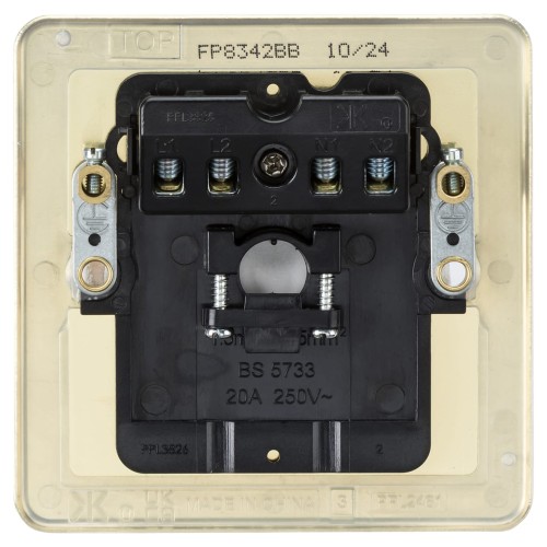 Knightsbridge 20A Flat Plate Flex Outlet Plate - Brushed Brass