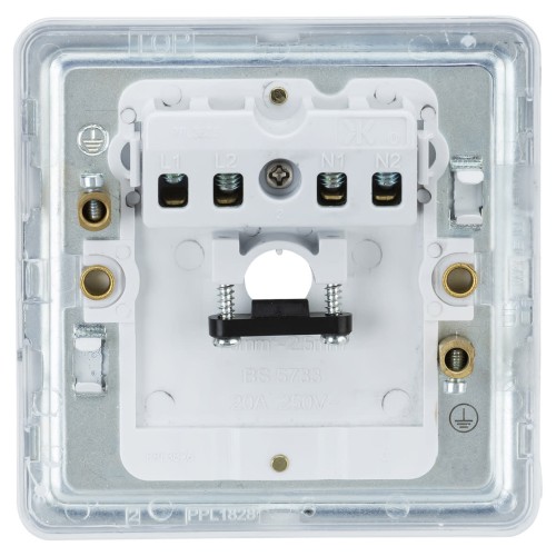 • Top-down termination for live, neutral and earth connections speeds up installation and simplifies wiring