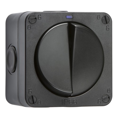 Knightsbridge 20AX IP66 2 Gang 2 Way Outdoor Weatherproof Switch with LED - Black