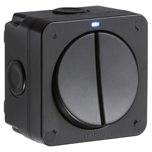 • Knightsbridge 20AX IP66 2 Gang 2 Way Outdoor Weatherproof Switch with LED - Black