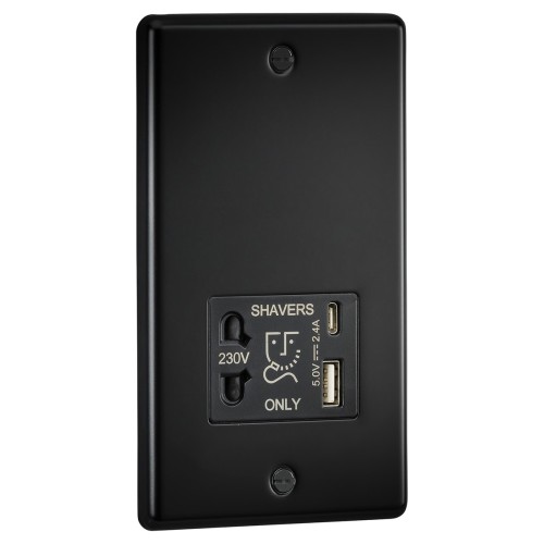 Knightsbridge 230V Shaver Socket with Type A/C USB Ports - 2.4A - Matt Black