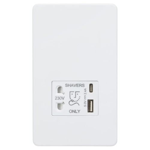 Knightsbridge 230V Shaver Socket with Type A/C USB Ports - 2.4A - Matt White
