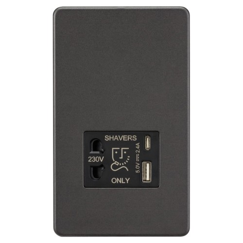 • Knightsbridge 230V Shaver Socket with Type A/C USB Ports - 2.4A - Smoked Bronze with Black Insert