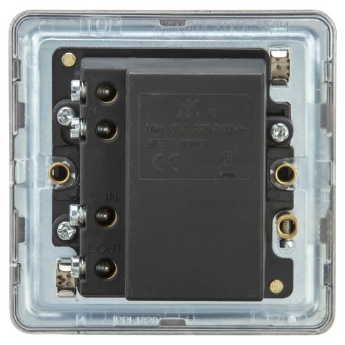 • Top-down termination for live, neutral and earth connections speeds up installation and simplifies wiring