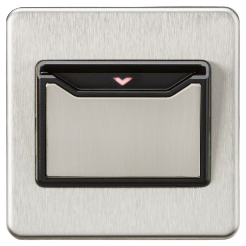 • Knightsbridge 32A 1 Gang Screwless Flat Plate Key Card Switch - Brushed Chrome
