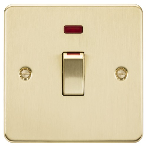 • Knightsbridge 45A 1 Gang Flat Plate Double Pole Cooker Switch with Neon - Brushed Brass