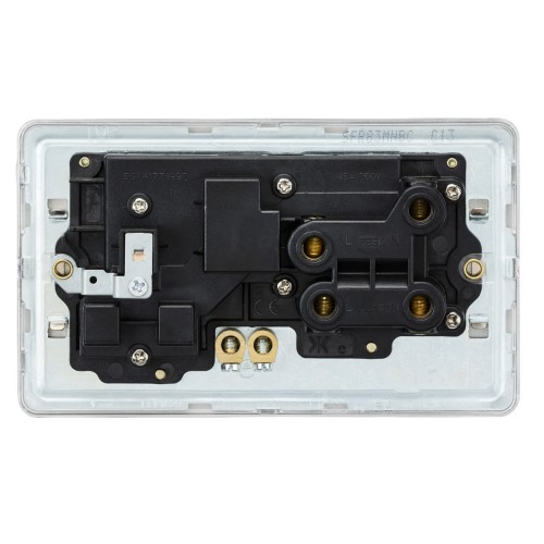 Knightsbridge 45A 2 Gang DP Cooker Switch & 13A Switched Socket with Neon - Brushed Chrome/Black