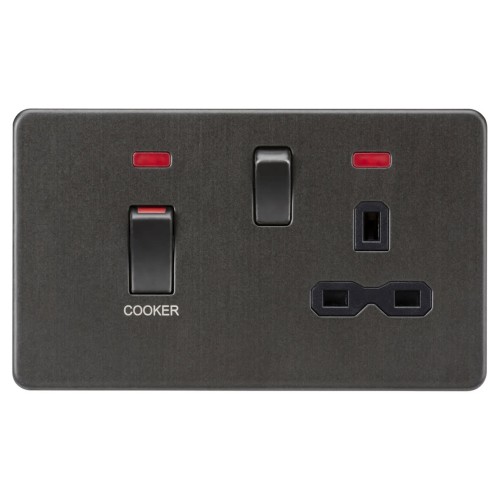 • Knightsbridge 45A 2 Gang DP Cooker Switch & 13A Switched Socket with Neon - Smoked Bronze/Black