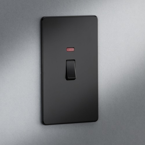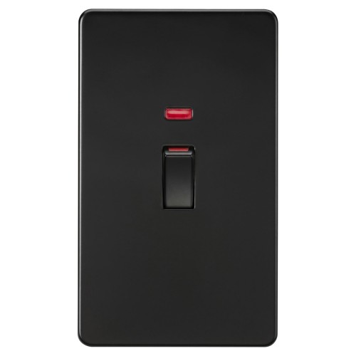 • Knightsbridge 45A 2 Gang Screwless Double Pole Cooker Switch with Neon - Matt Black