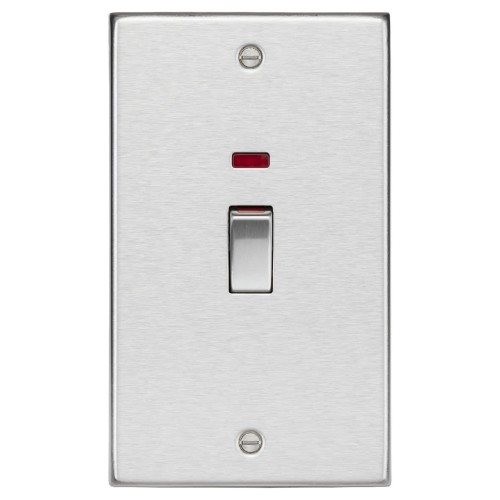 Knightsbridge 45A 2 Gang Square Edge Double Pole Cooker Switch with Neon - Brushed Chrome