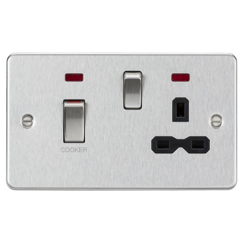 • Knightsbridge 45A Flat Plate DP Cooker Switch & 13A Socket with Neons - Brushed Chrome/Black Insert