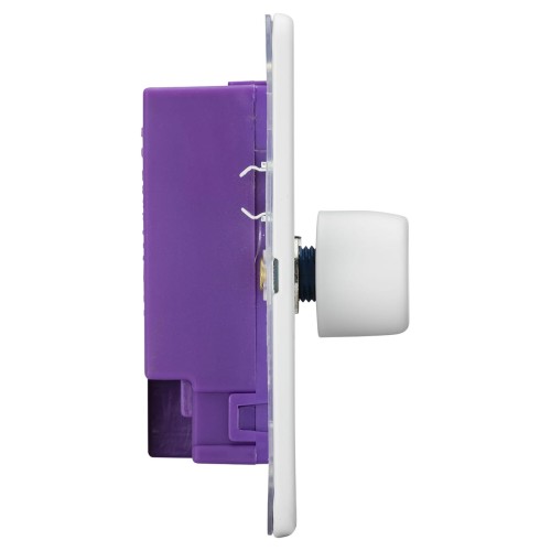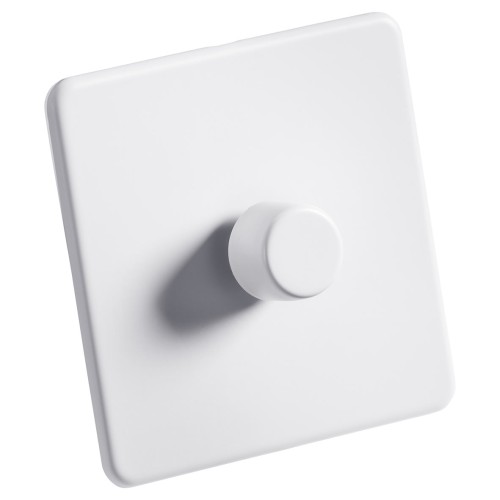 Screwless, flat plate design with matching matt white dimmer cap delivers a sleek, contemporary look that complements any interior décor
