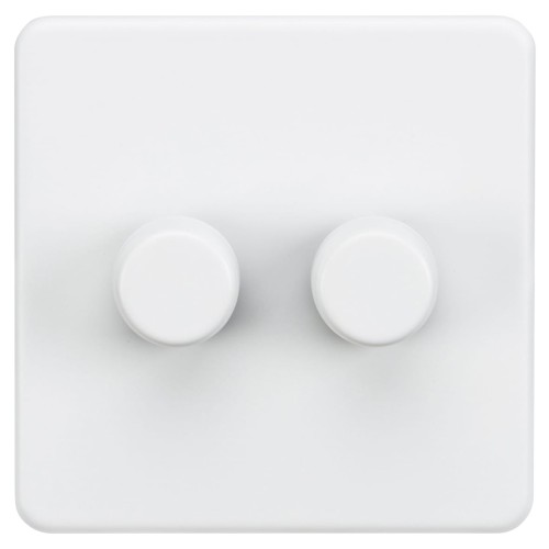 • Knightsbridge 5 - 150W 2 Gang 2 Way Push On/Off Rotary Intelligent LED Dimmer Switch - Matt White