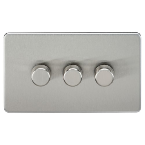 • Knightsbridge 5 - 150W 3 Gang 2 Way Push On/Off Rotary Intelligent LED Dimmer Switch - Brush Chrome
