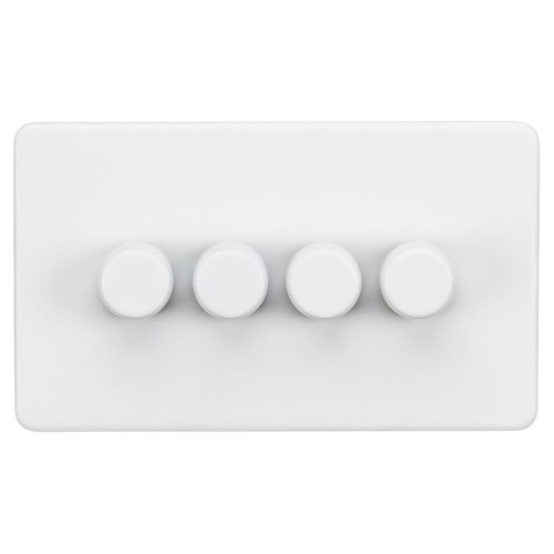 • Knightsbridge 5 - 150W 4 Gang 2 Way Push On/Off Rotary Intelligent LED Dimmer Switch - Matt White