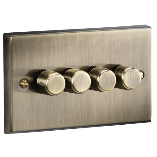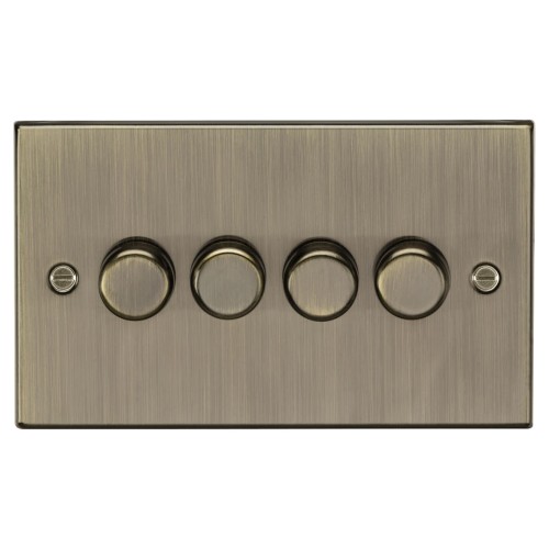 • Knightsbridge 5 - 150W 4 Gang 2 Way Push On/Off Rotary Square Intelligent LED Dimmer - Antique Brass