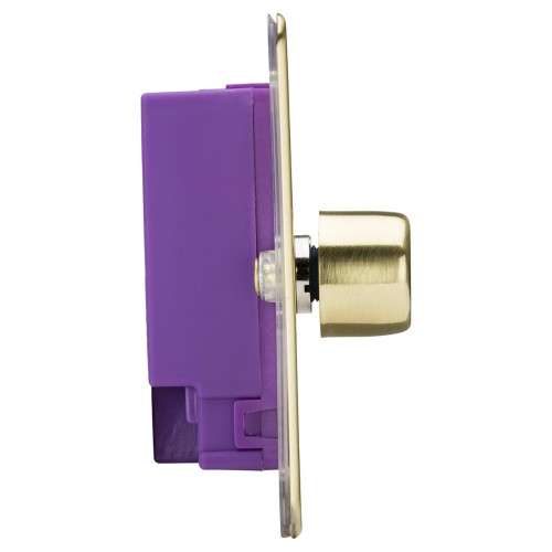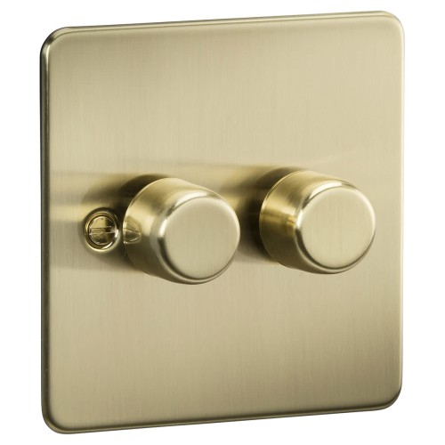 Knightsbridge 5-150W 2 Gang 2 Way Push On/Off Rotary Flat Intelligent LED Dimmer - Brushed Brass