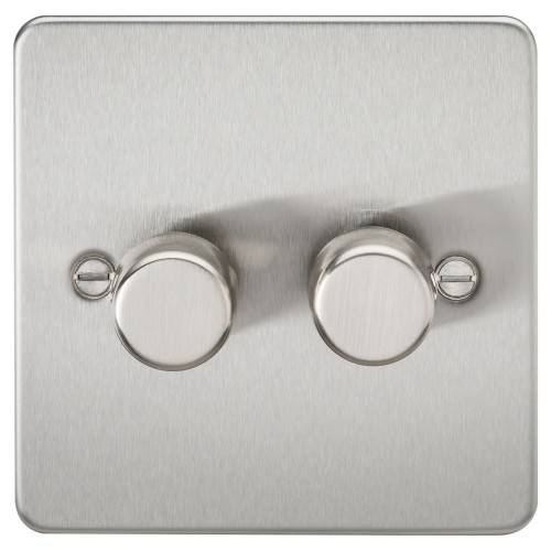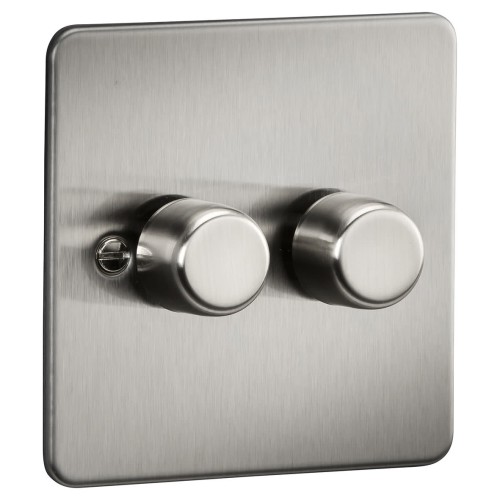 • Knightsbridge 5-150W 2 Gang 2 Way Push On/Off Rotary Flat Intelligent LED Dimmer - Brushed Chrome