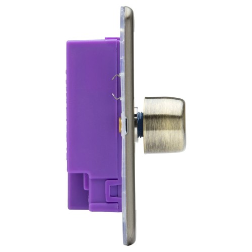• Knightsbridge 5-150W 2 Gang 2 Way Push On/Off Rotary Flat Intelligent LED Dimmer Switch- Ant Brass