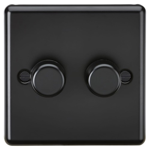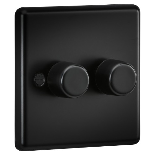 • Knightsbridge 5-150W 2 Gang 2 Way Push On/Off Rotary Rounded Intelligent LED Dimmer - Matt Black