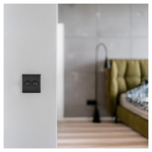 Screwless dimmer switch features a flat plate design that delivers a seamless finish with no visible fixings, for a smooth decorative touch