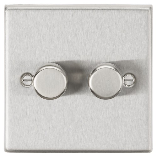 • Knightsbridge 5-150W 2 Gang 2 Way Push On/Off Rotary Square Intelligent LED Dimmer - Brushed Chrome