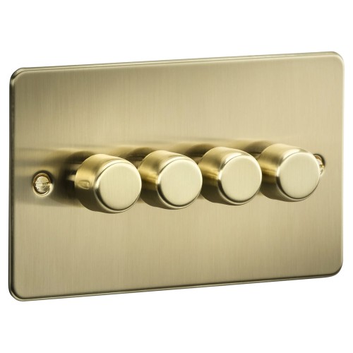 Knightsbridge 5-150W 4 Gang 2 Way Push On/Off Rotary Flat Intelligent LED Dimmer - Brushed Brass