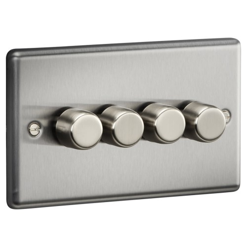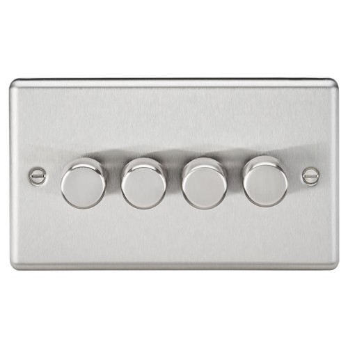 Knightsbridge 5-150W 4 Gang 2 Way Push On/Off Rotary Rounded Intelligent LED Dimmer - Brushed Chrome