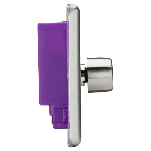 • Dimmer switch boasts a screwless flat plate design that delivers a seamless finish with no visible fixings, for a smooth decorative touch
