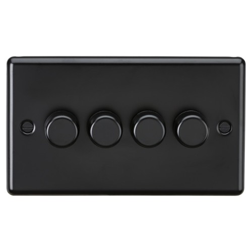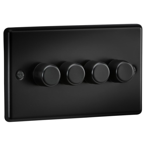 • Knightsbridge 5-150W 4 Gang 2 Way Push On/Off Rotary Rounded Intelligent LED Dimmer - Matt Black