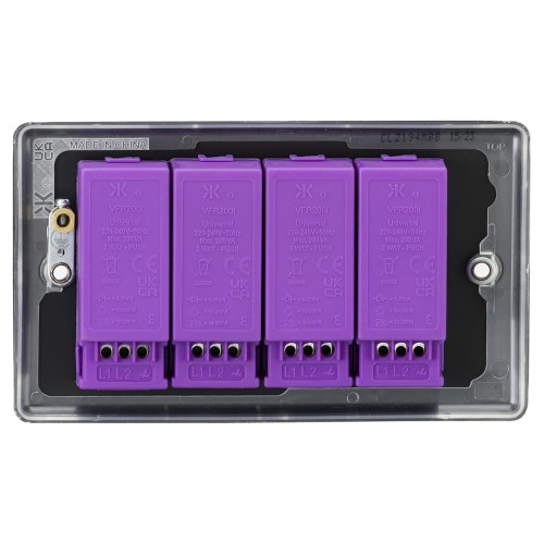 • Screwless dimmer switch features a flat plate design that delivers a seamless finish with no visible fixings, for a smooth decorative touch