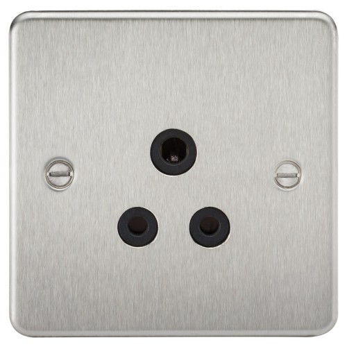 • Knightsbridge 5A Flat Plate Unswitched Round Pin Socket - Brushed Chrome with Black Insert