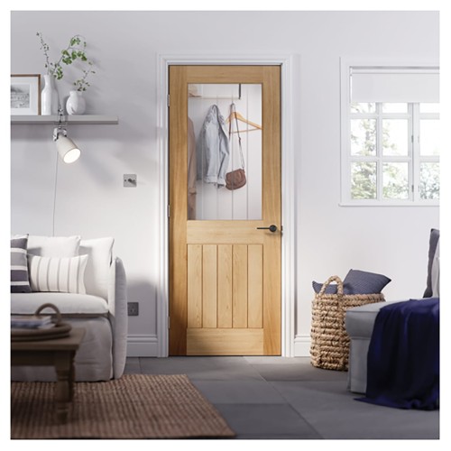 LPD Belize 1 Light Clear Glazed with Frosted Lines Pre-Finished Internal Door - 2040 x 726mm - Oak