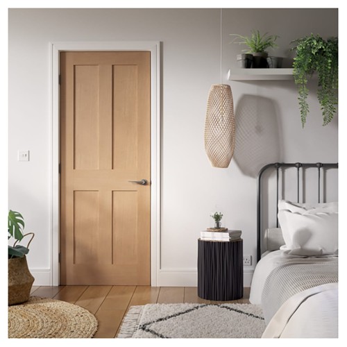 • LPD London 4 Panel Unfinished Solid Internal FD30 Fire Door - 1981 x 762 x 44mm - Oak