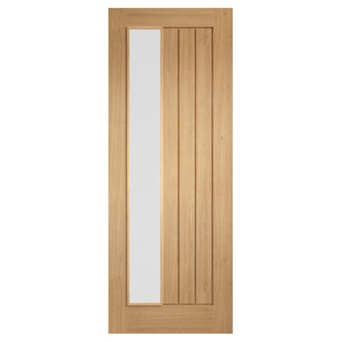 • LPD Mexicano 1 Light Offset Frosted Glazed Pre-Finished Solid Internal Door - 1981 x 686mm - Oak