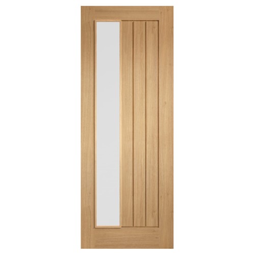 • LPD Mexicano 1 Light Offset Frosted Glazed Pre-Finished Solid Internal Door - 1981 x 762mm - Oak