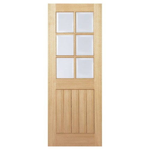 LPD Mexicano 6 Light Clear Glazed Bevelled Unfinished Solid Internal Door - 1981 x 838 x 35mm - Oak