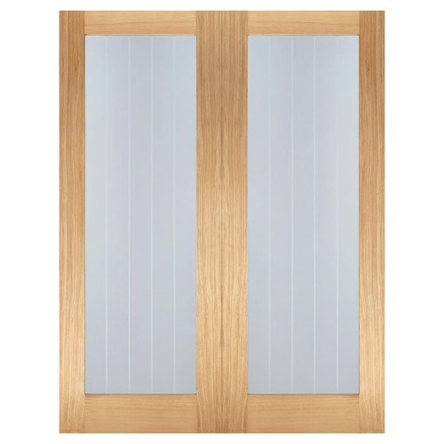 LPD Mexicano Pattern 10 Clear & Frosted Lines Unfinished Internal French Doors - 1981 x 1168mm - Oak